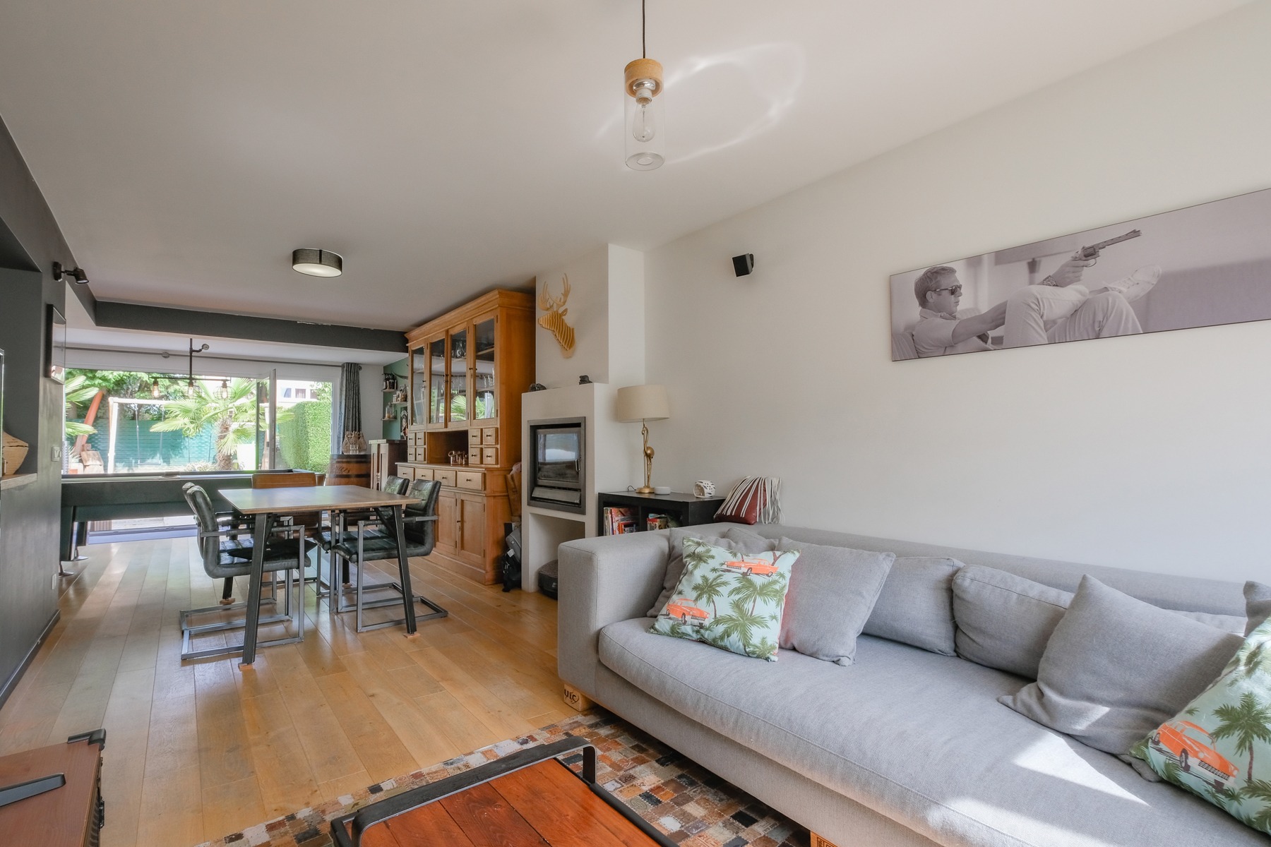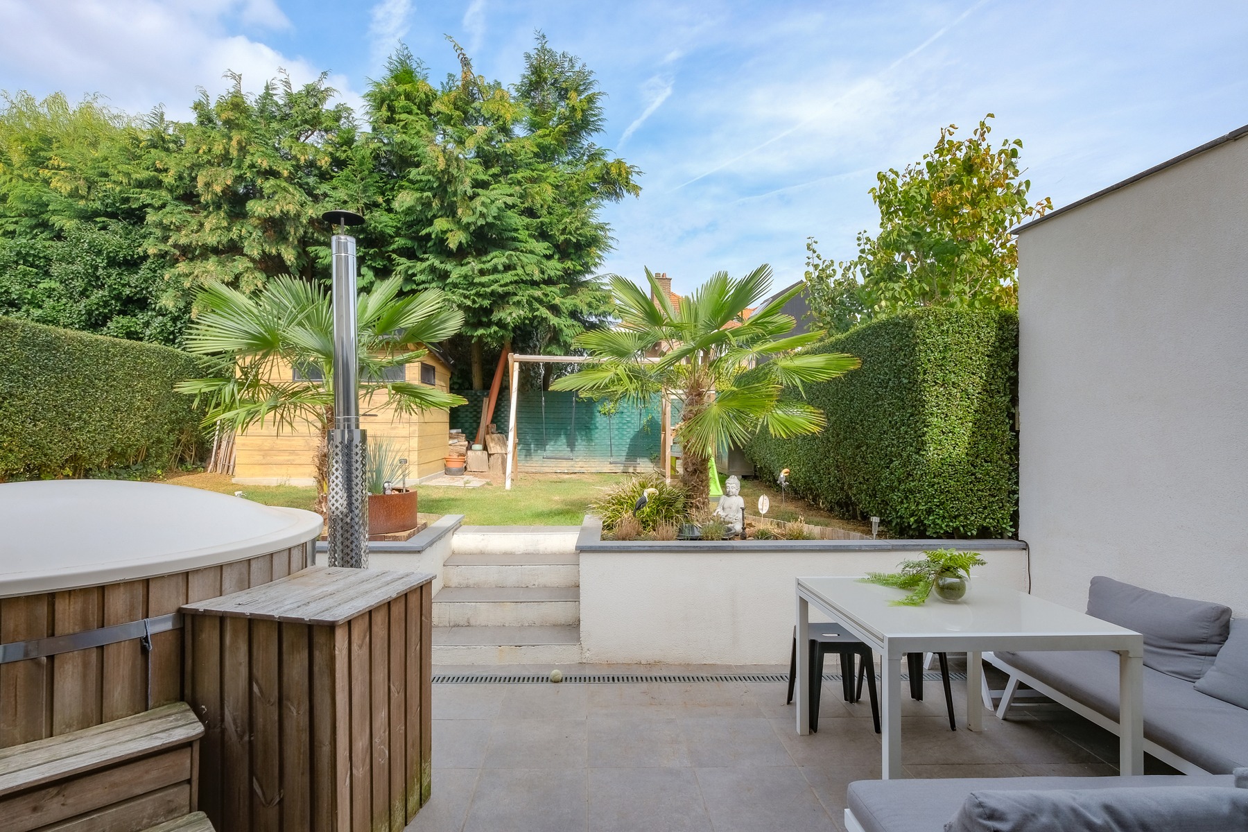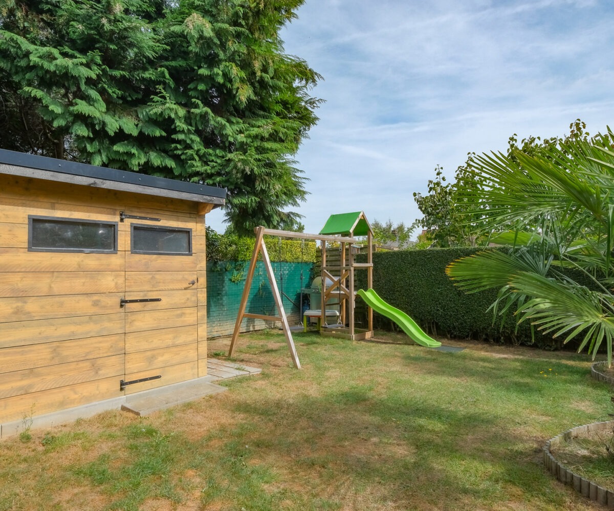 – Au rez-de-chaussée : Un hall d’entrée avec vestiaire et wc invité, un agréable séjour comprenant un espace salon, salle à manger et cuisine super-équipée ayant un accès à la terrasse et au jardin. Une buanderie et un garage.