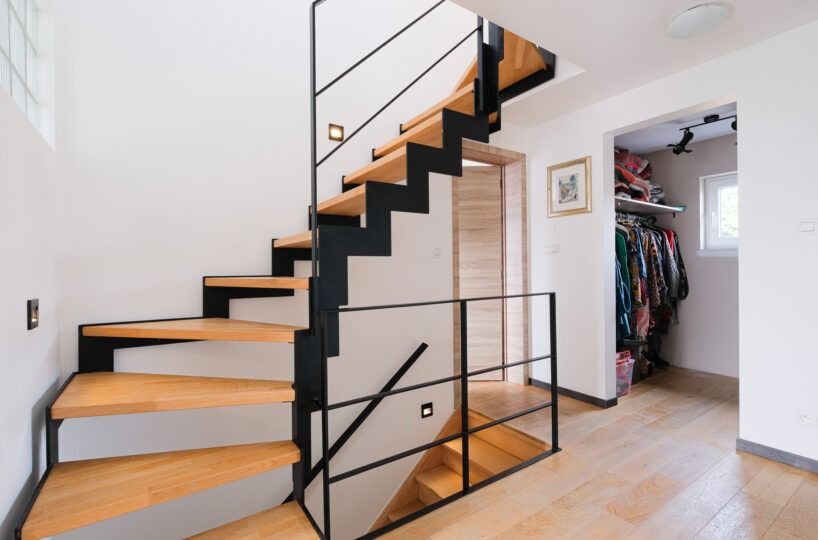 – Au 1er étage : trois chambres (23, 12, 10 m2), un dressing et une salle de bain ( bain, double vasque et wc)