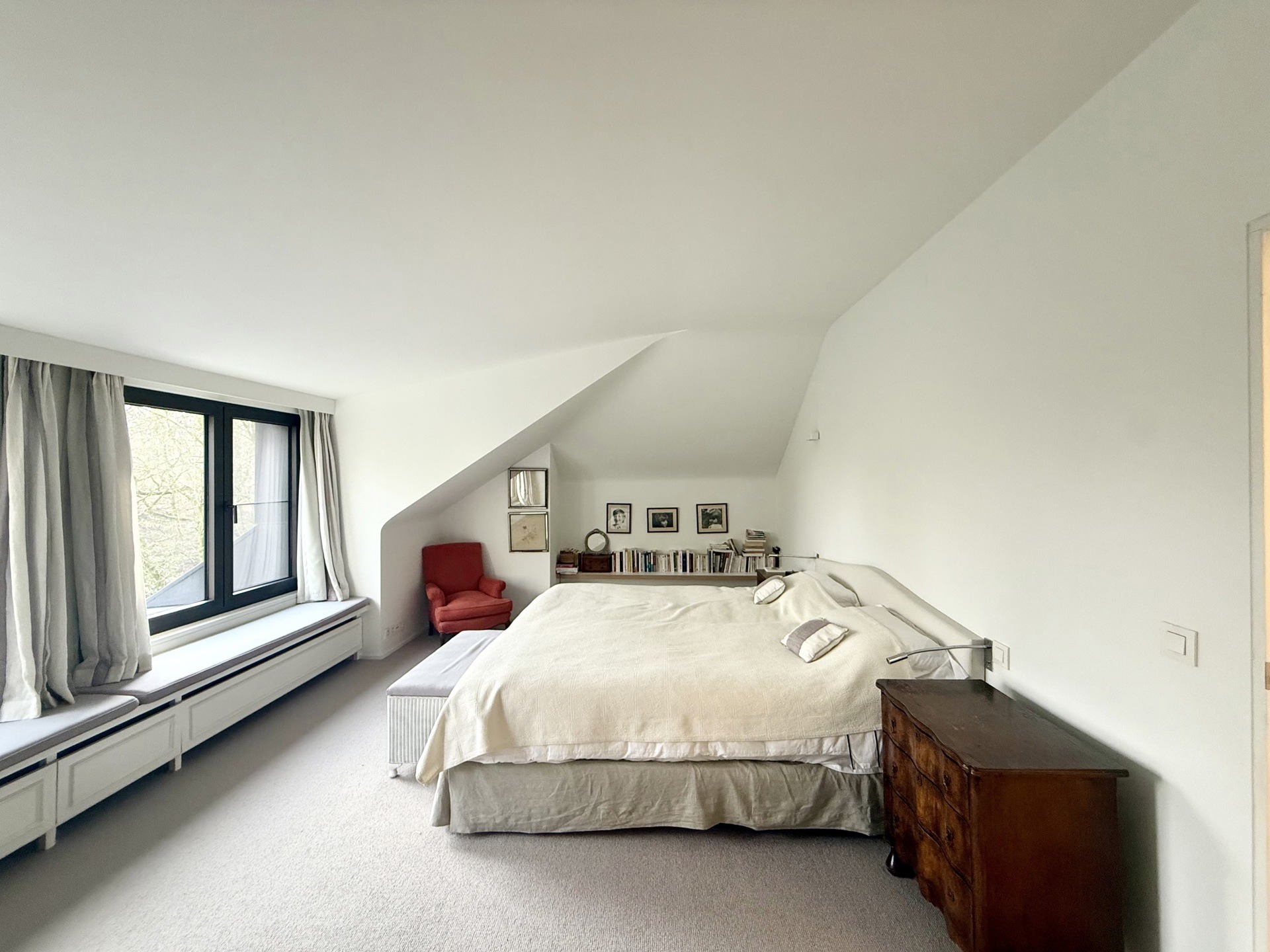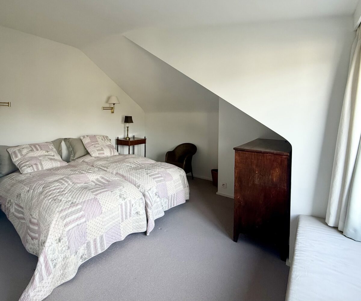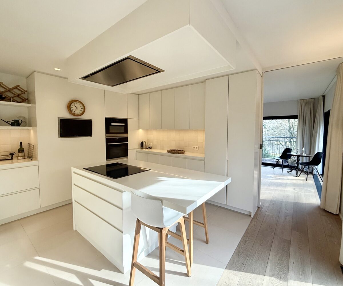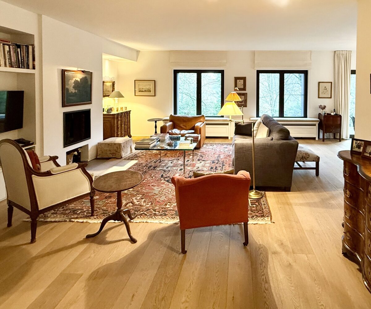 Situé au 2ème et dernier étage d’une petite copropriété de 4 unités construite en 1977, l’appartement de 220m2 (selon PEB) entièrement rénové avec goût en 2015 est composé comme suit : A l’étage de vie : Un hall d’entrée avec meuble bibliothèque. Un vestiaire avec rangements sur-mesure et WC invité. Un agréable séjour comprenant un espace salon avec feu-ouvert et une salle à manger. Une magnifique cuisine entièrement équipée avec îlot central et hotte suspendue. Un bureau / chambre d’invité (20m2) avec salle de douche indépendante (douche, lavabo, WC). Une buanderie aménagée. Une magnifique terrasse de +- 37m2 orientée sud prolonge les espaces de vie et offre une grande luminosité.