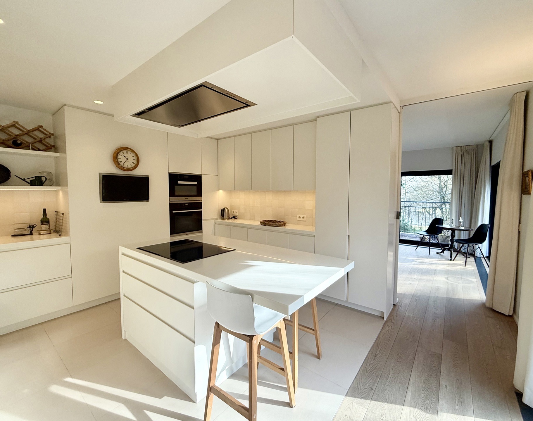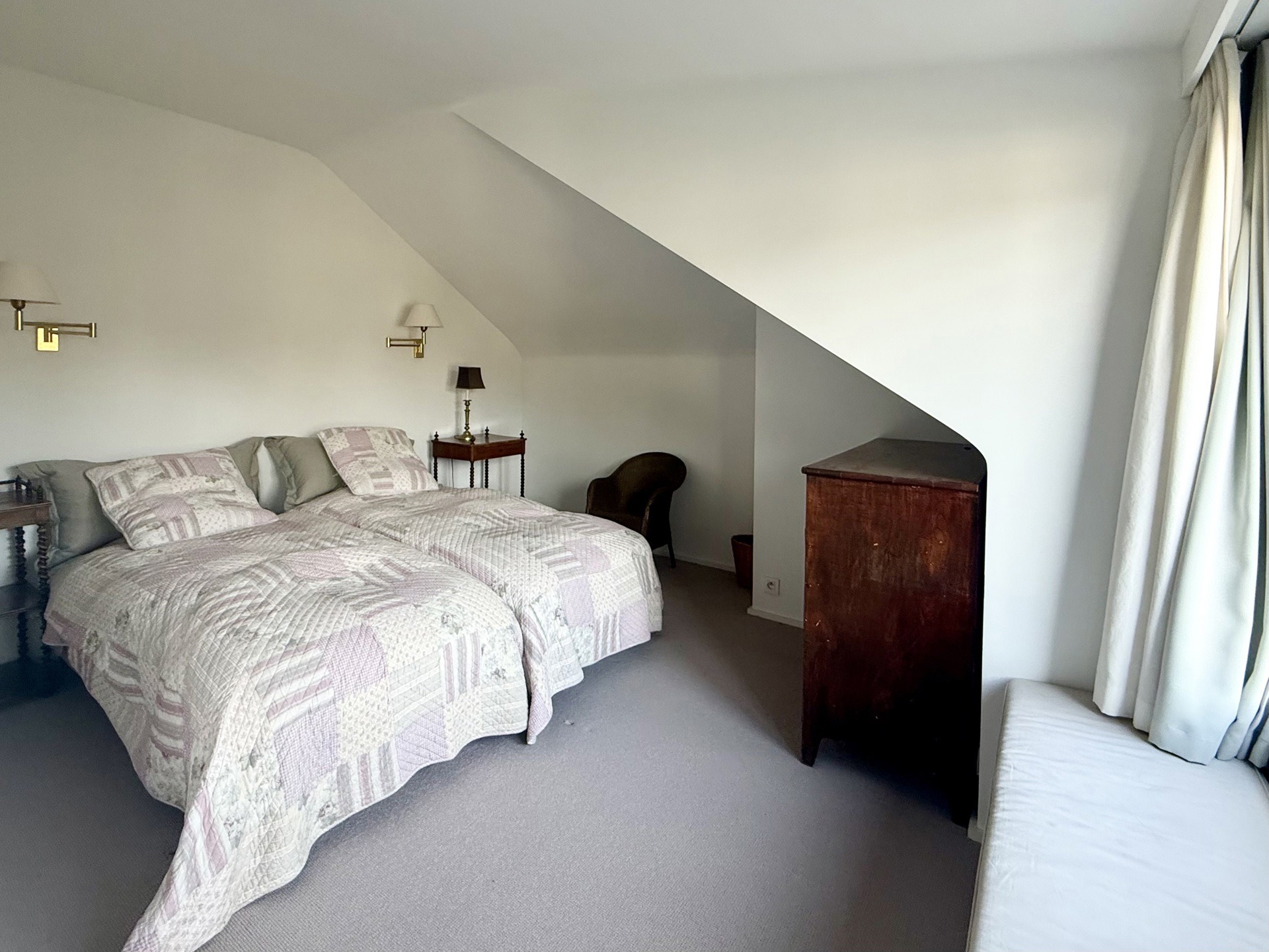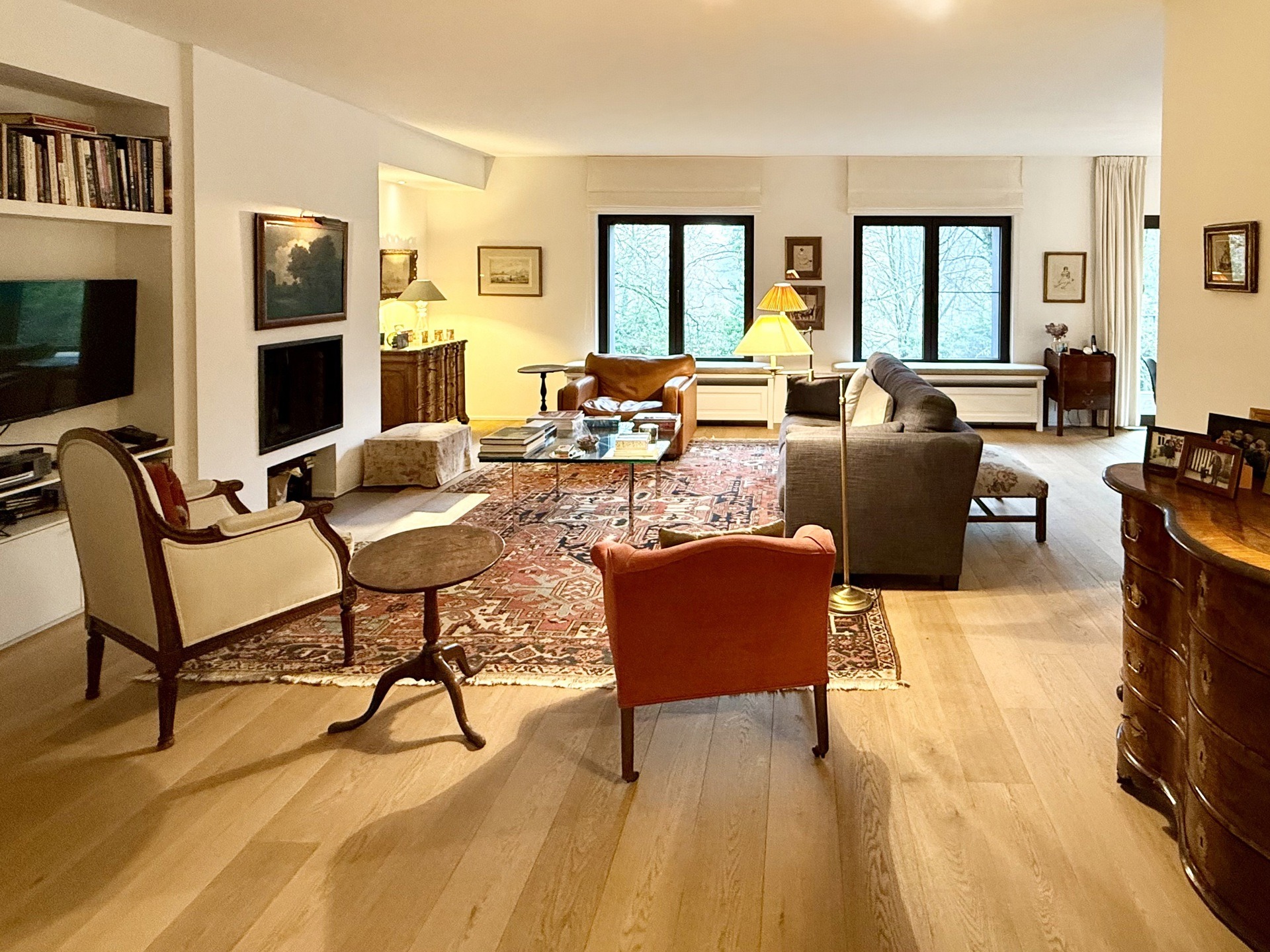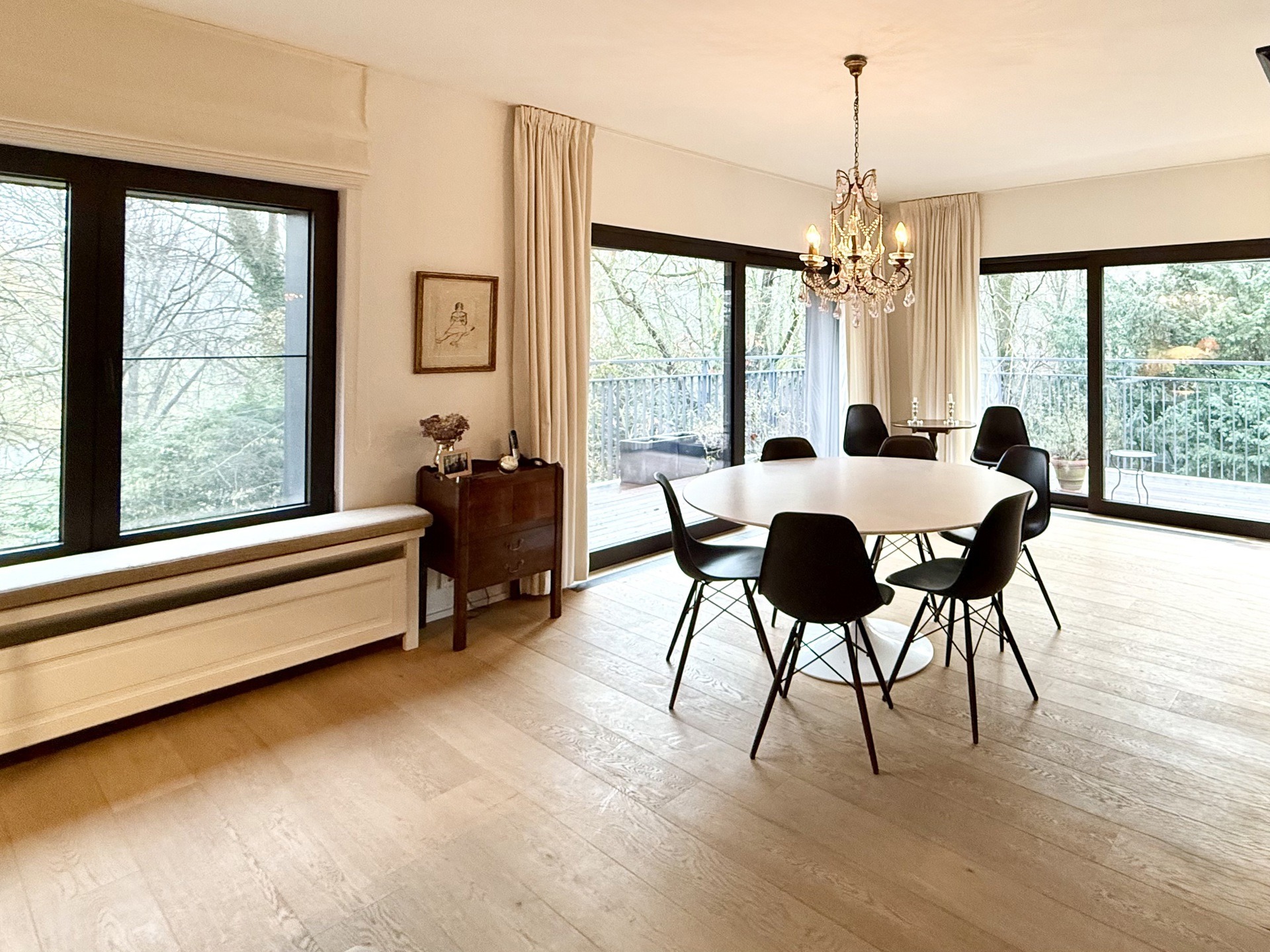 Situé au 2ème et dernier étage d’une petite copropriété de 4 unités construite en 1977, l’appartement de 220m2 (selon PEB) entièrement rénové avec goût en 2015 est composé comme suit : A l’étage de vie : Un hall d’entrée avec meuble bibliothèque. Un vestiaire avec rangements sur-mesure et WC invité. Un agréable séjour comprenant un espace salon avec feu-ouvert et une salle à manger. Une magnifique cuisine entièrement équipée avec îlot central et hotte suspendue. Un bureau / chambre d’invité (20m2) avec salle de douche indépendante (douche, lavabo, WC). Une buanderie aménagée. Une magnifique terrasse de +- 37m2 orientée sud prolonge les espaces de vie et offre une grande luminosité.