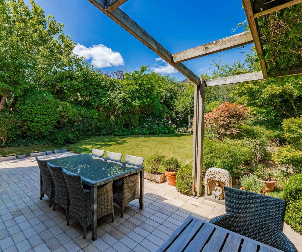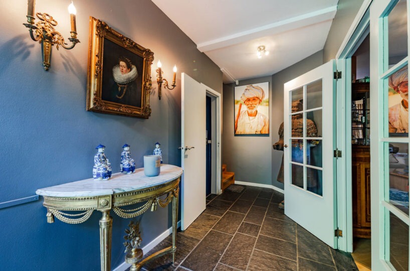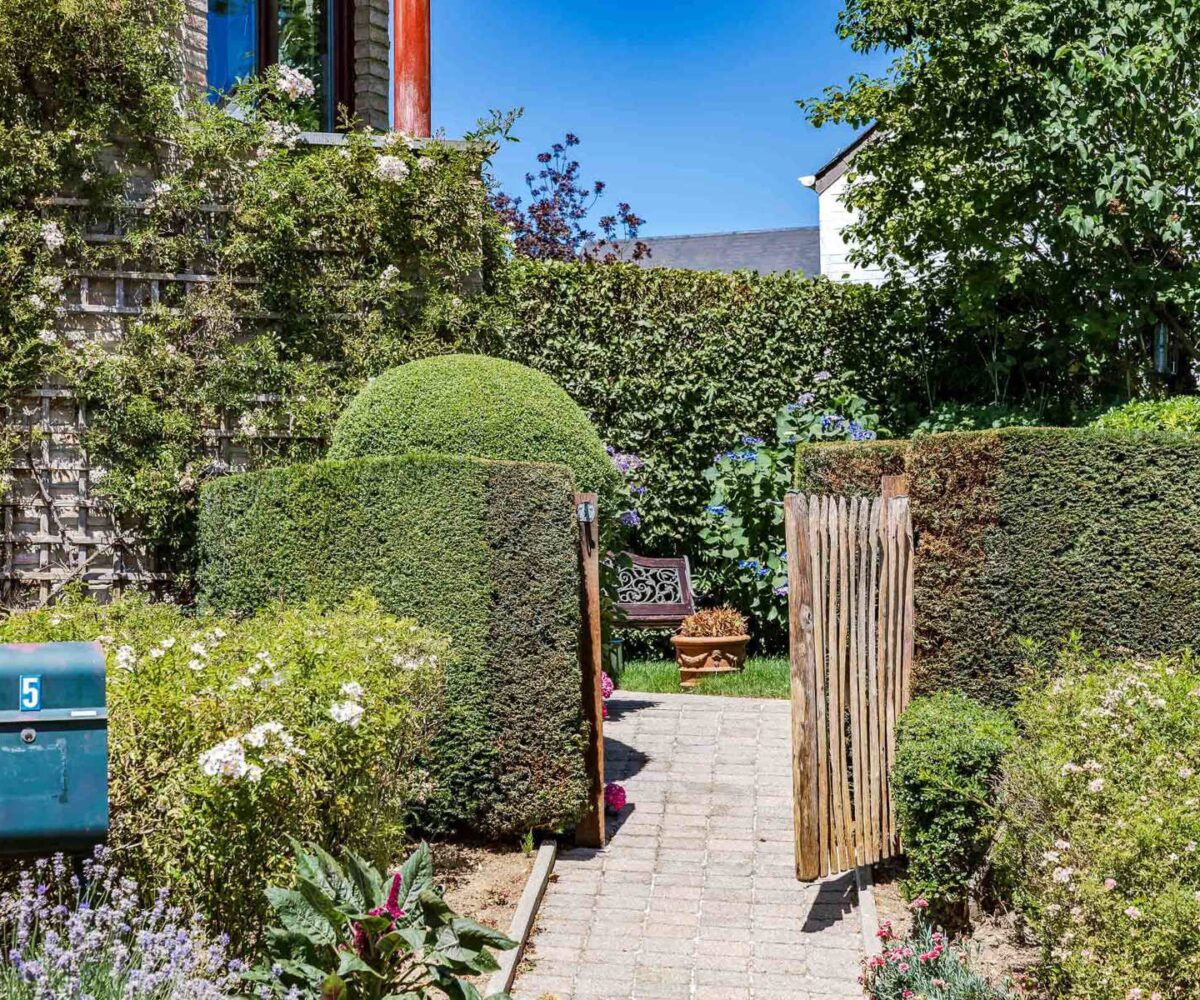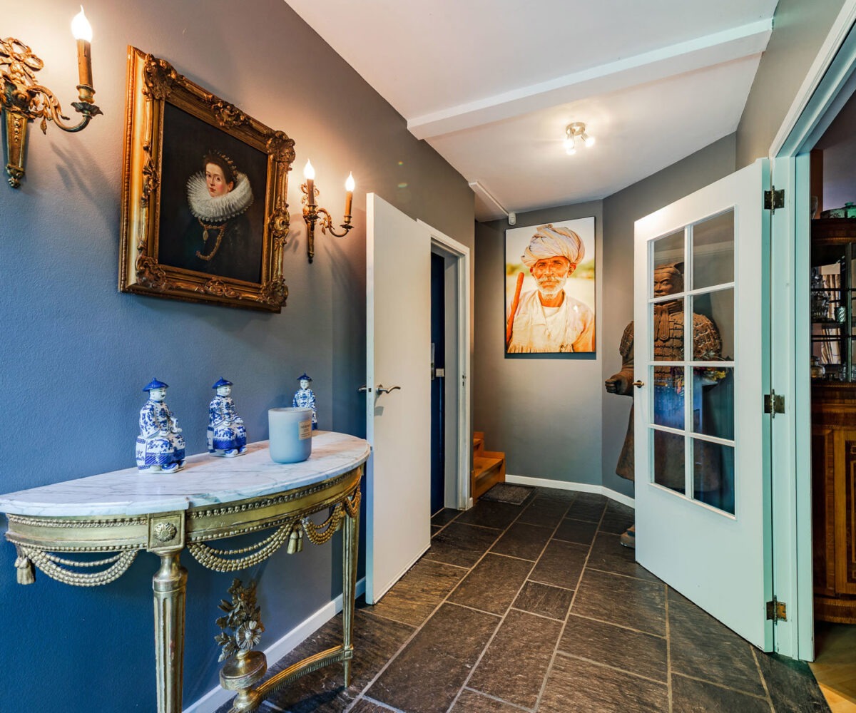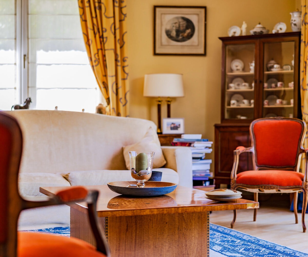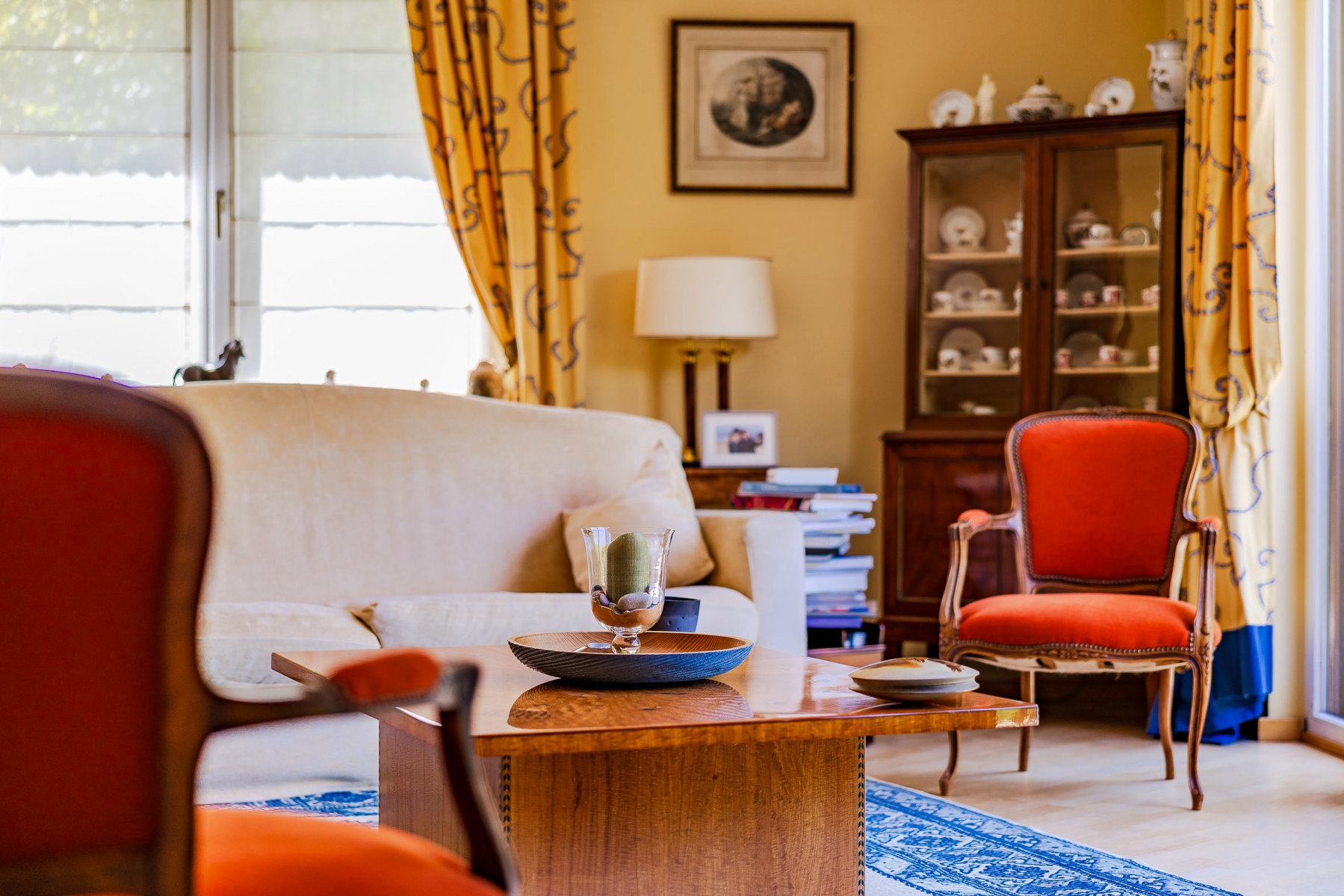 – Au rez-de-chaussée : Un hall d’entrée avec vestiaire et wc invité, un agréable salon (avec feu ouvert) ayant un accès à la terrasse et au jardin. A l’entre-étage, une salle à manger et une cuisine.