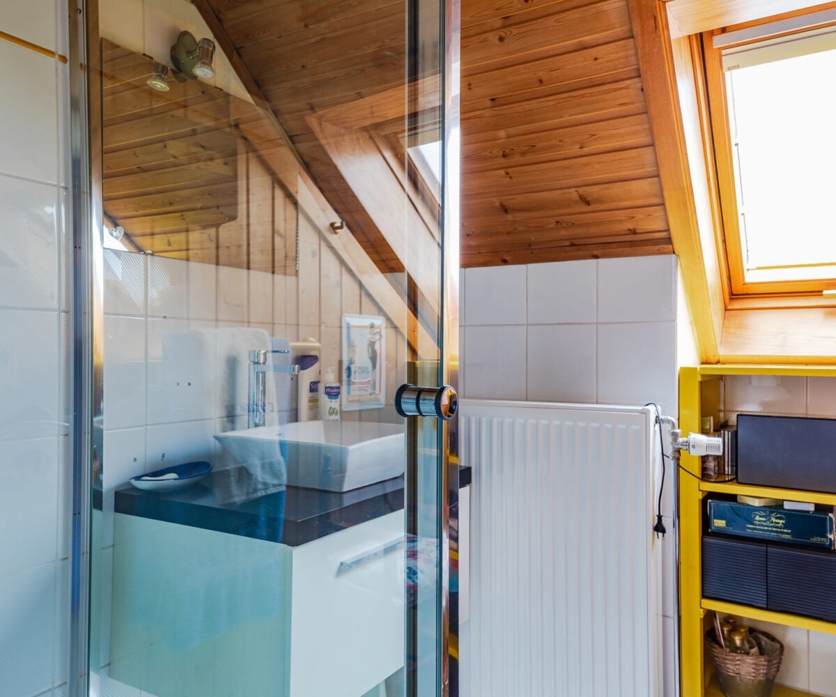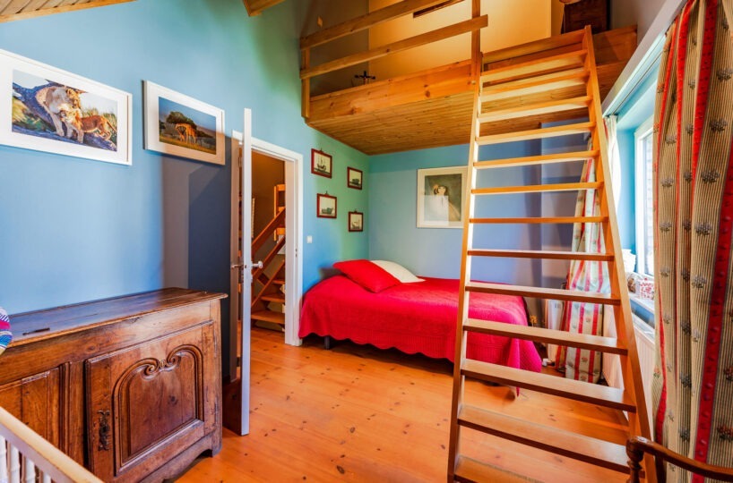 – Au 2ème étage : Deux chambres avec mezzanine, une salle de douche séparée (douche, évier, sauna)