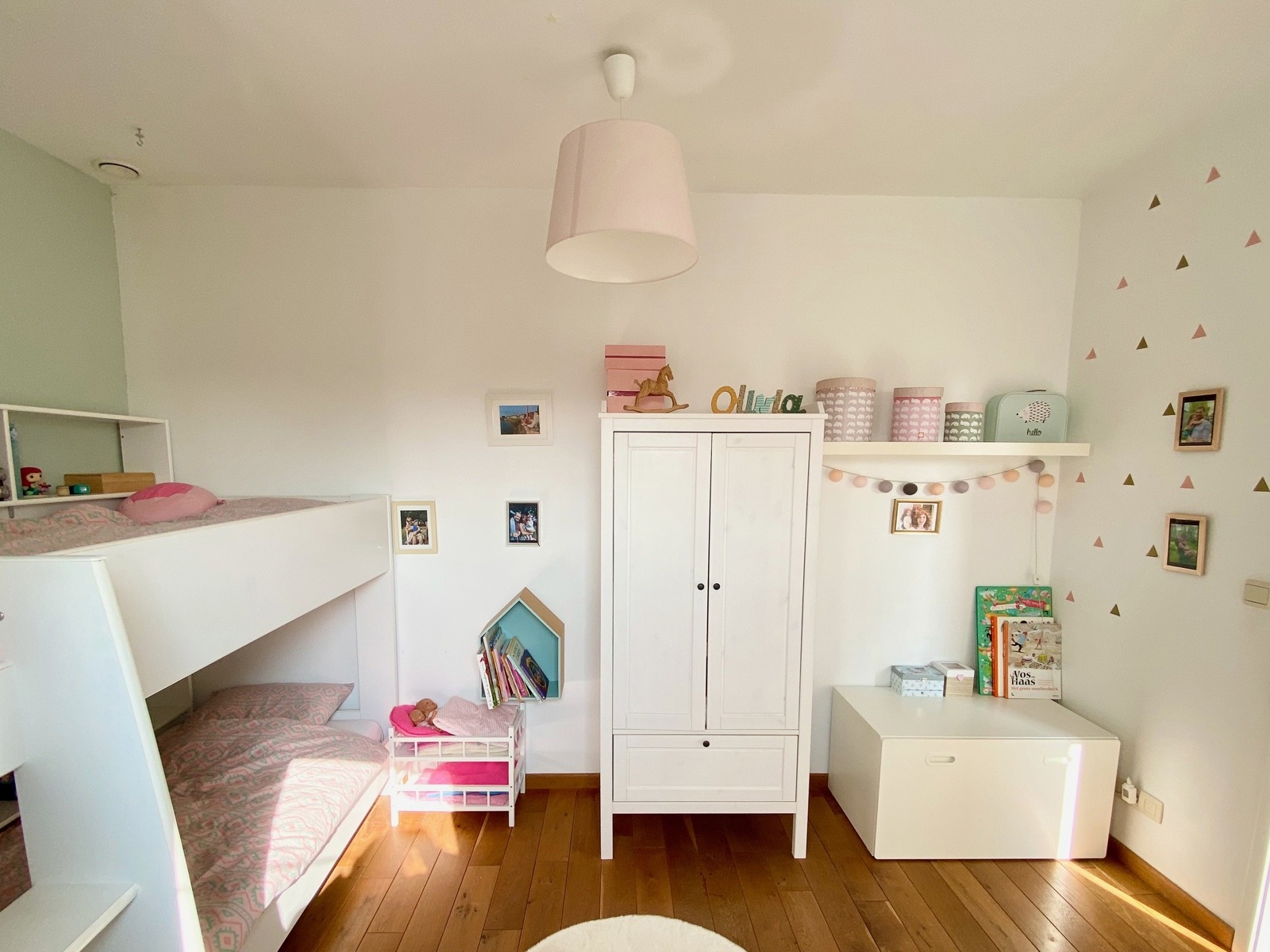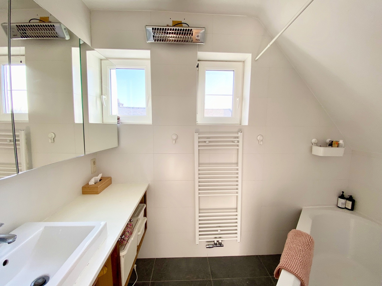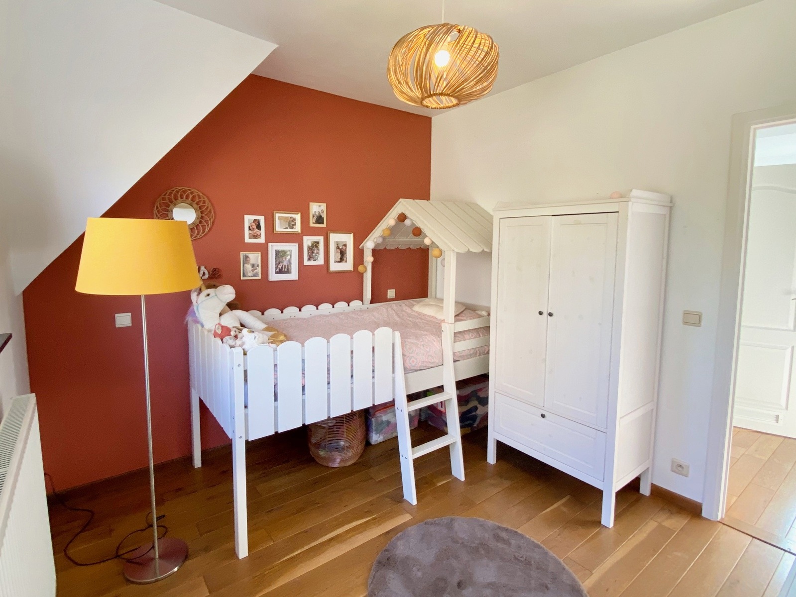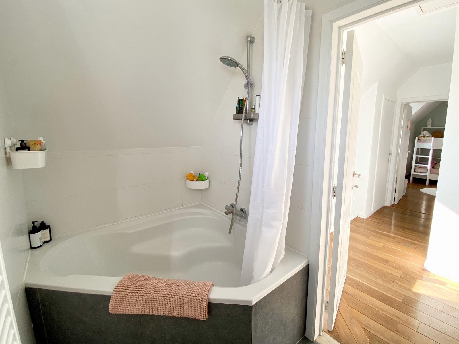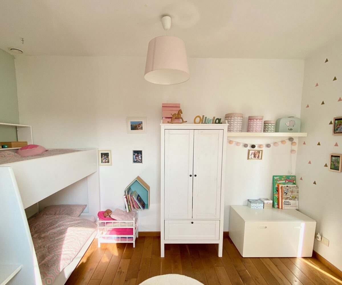 – A l’étage (+-50m2): Un hall de nuit, un bel espace parental (23m2) avec une chambre et un dressing/bureau attenant, deux jolies chambres d’enfant (10 et 9m2), une salle de bains ( large bain, douche dans le bain, double vasques ), toilette séparée.