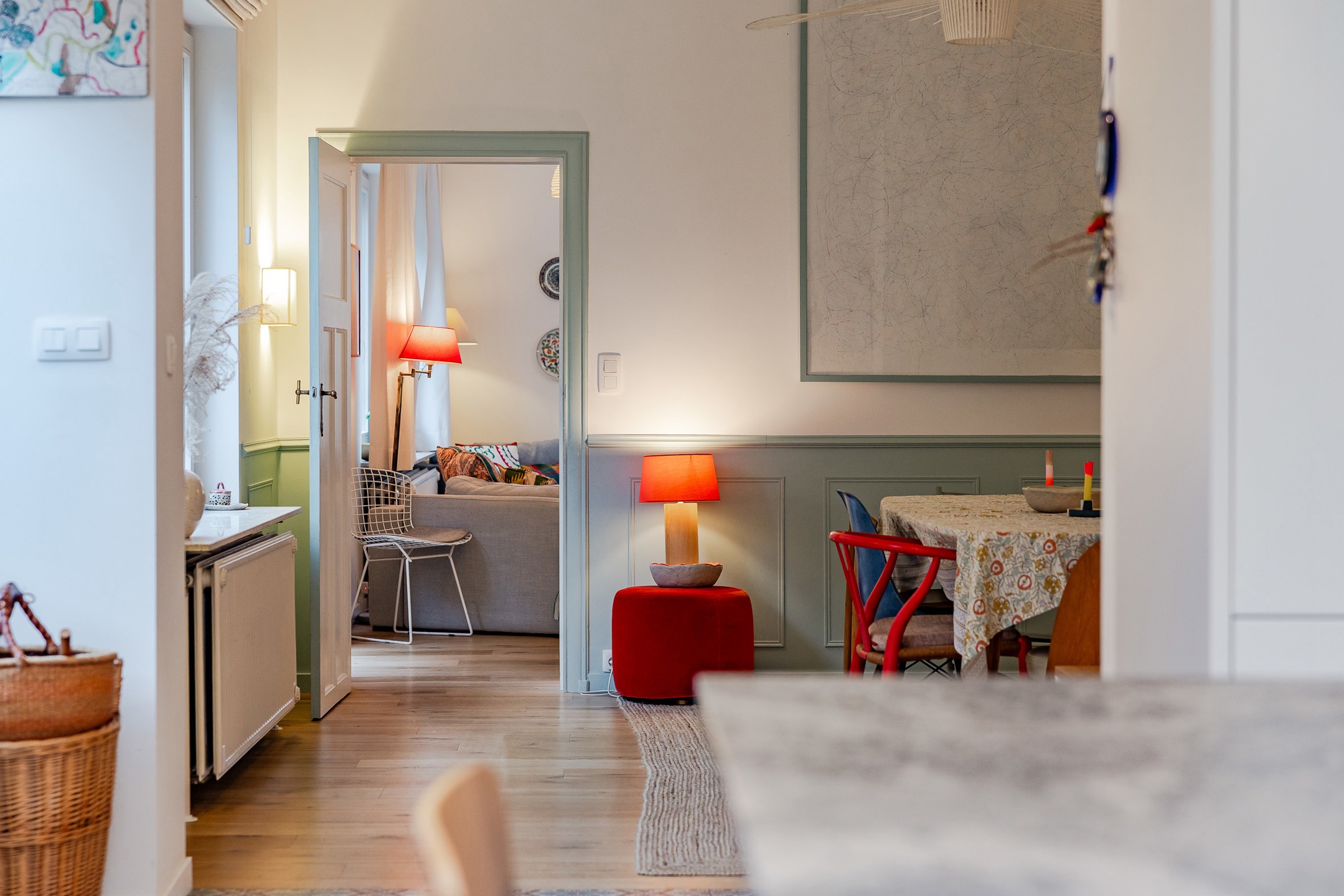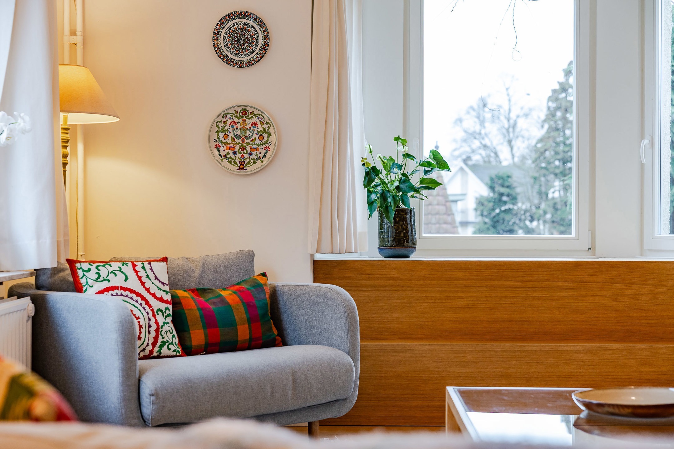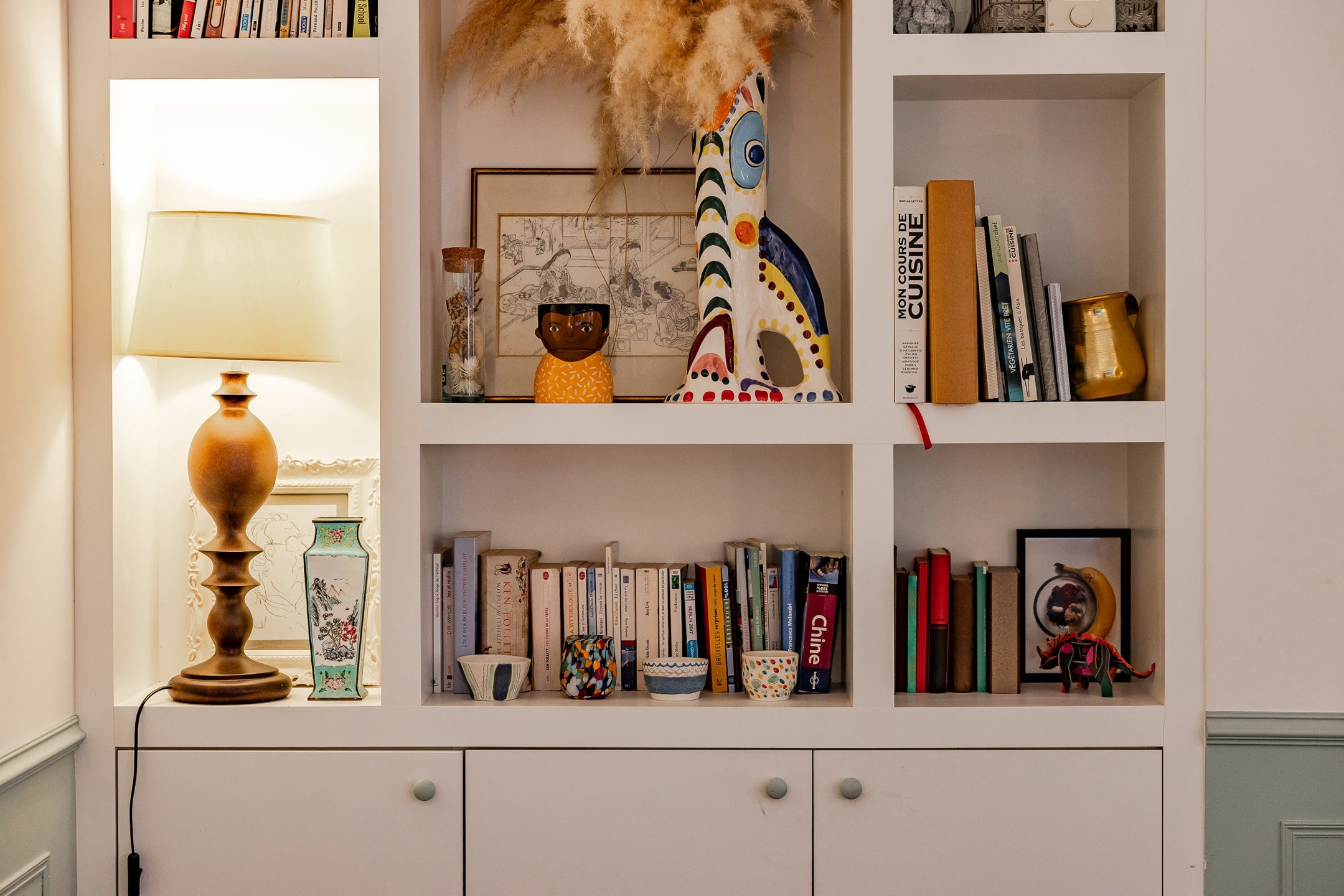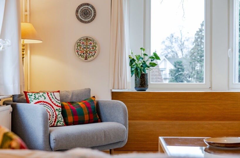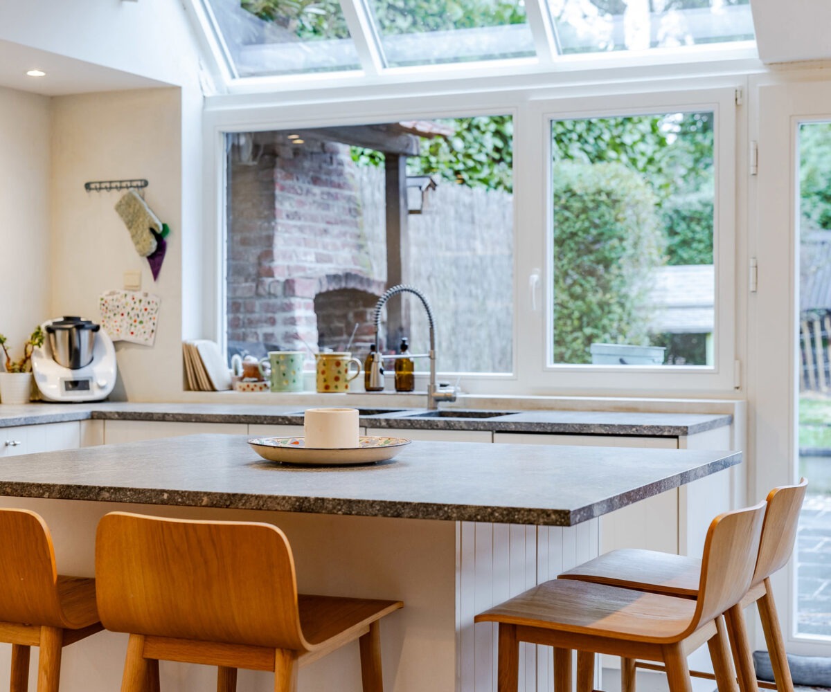 – Rez-de-chaussée : hall d’entrée avec vestiaire et wc invité. Agréable cuisine entièrement équipée avec ilôt central offrant une vue et un accès direct au jardin. Salle à manger avec rangements sur-mesure. Agréable salon avec cassette intégrée.
