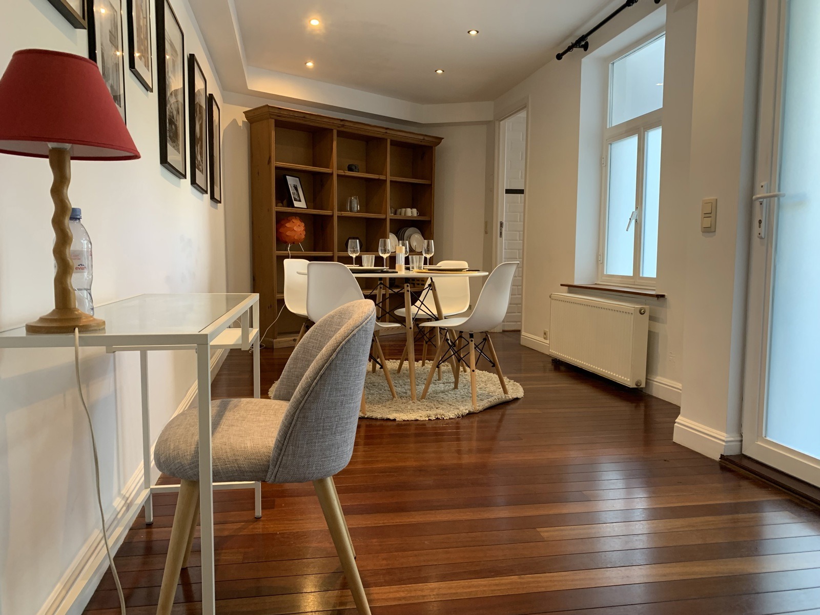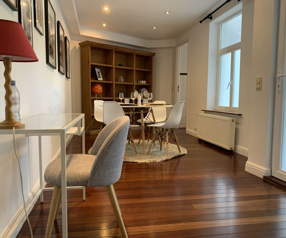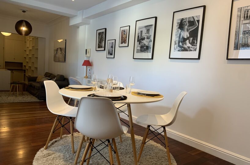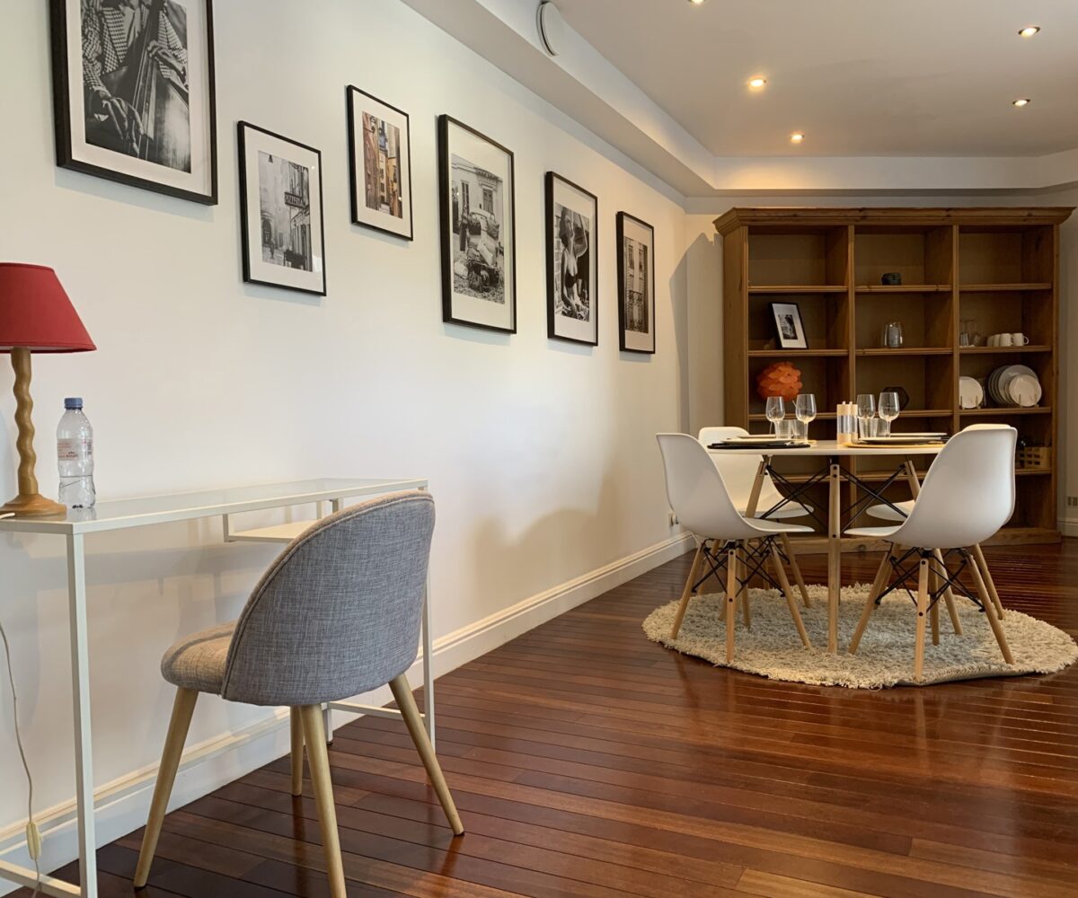 Situé au rez-de-chaussée d’une petite copropriété bien entretenue de 4 étages, l’appartement est composé comme suit : Au rez-de-chaussée, un wc séparé, une agréable pièce de vie en enfilade (+- 35m2) comprenant un espace bureau, salon et salle à manger, une cuisine super équipée. Au -1, une chambre avec nombreux rangements encastrés (reconnue comme un dressing à l’urbanisme), une salle de bain (bain, douche, double évier, wc, système ventilation) et un espace buanderie.