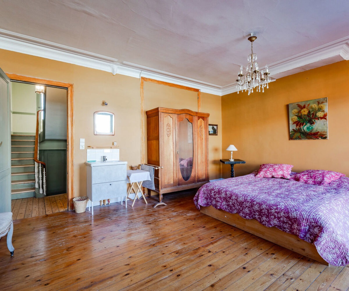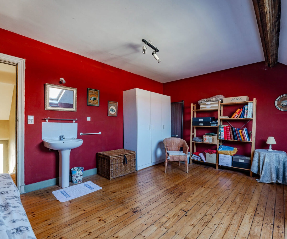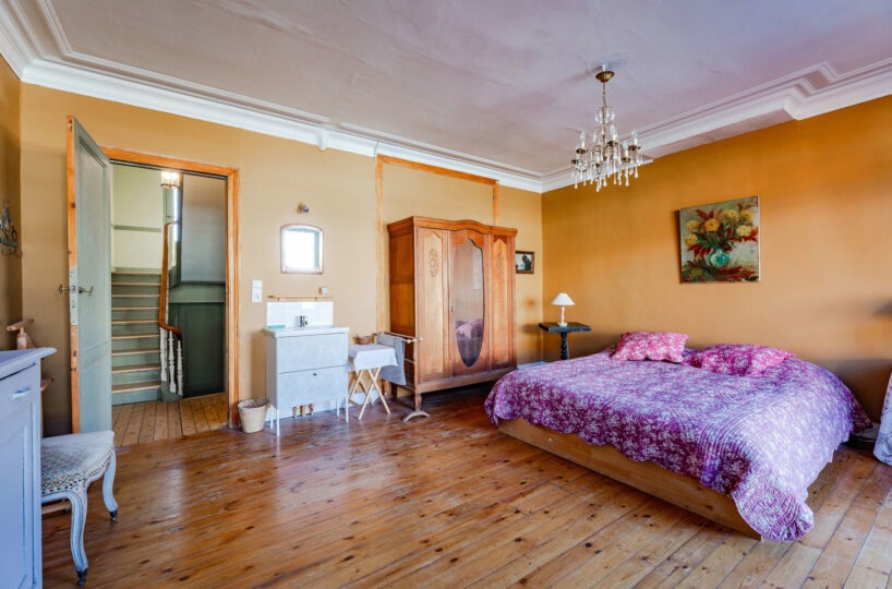 – Au 3ème étage : une chambre (avec évier), un grenier et une mezzanine (sous toiture).