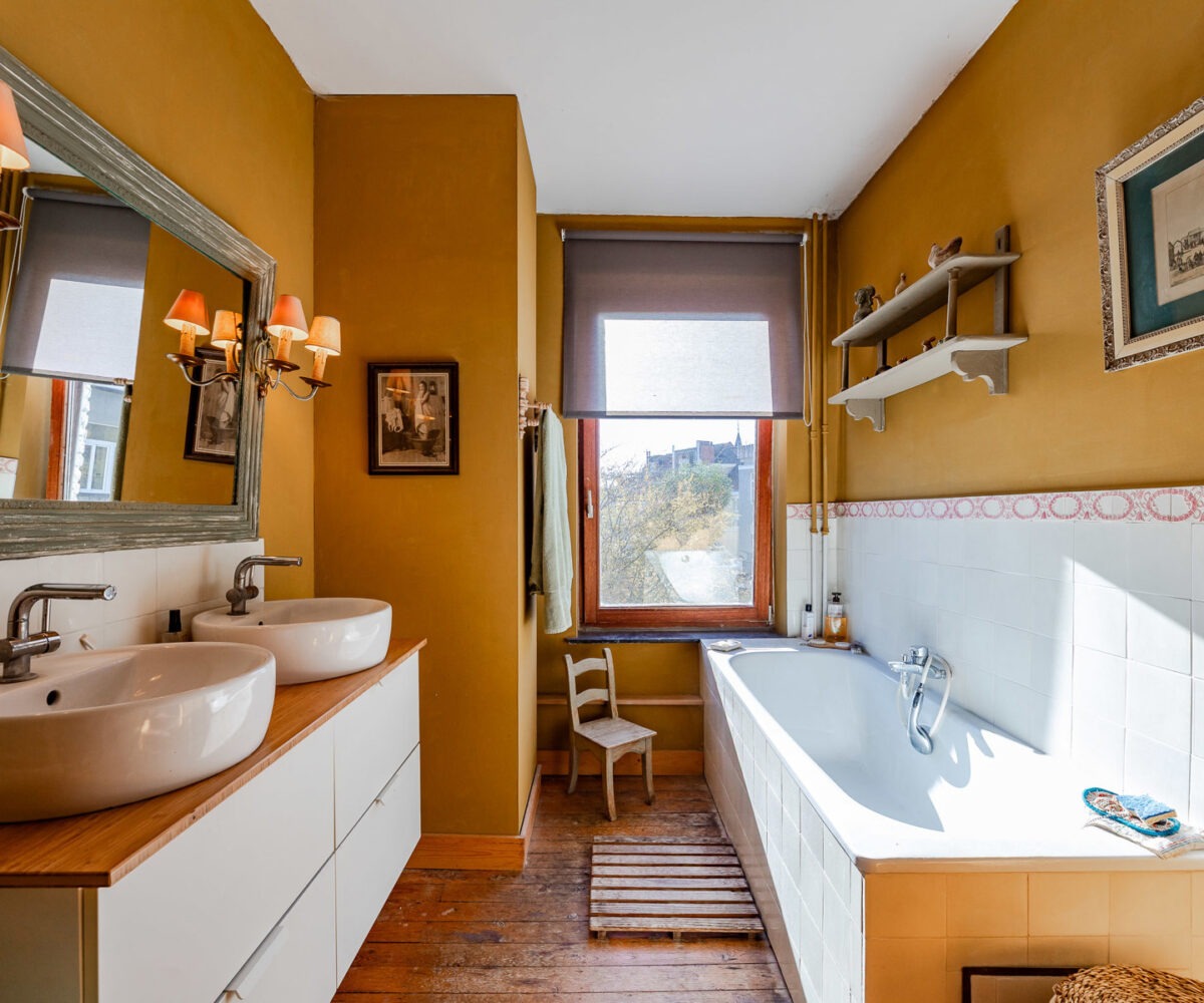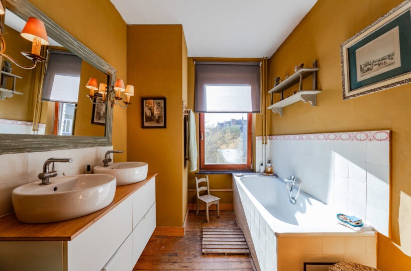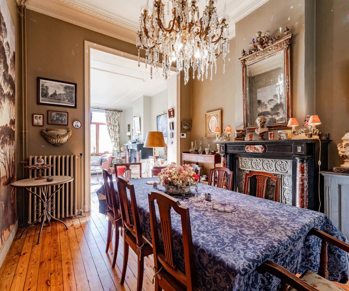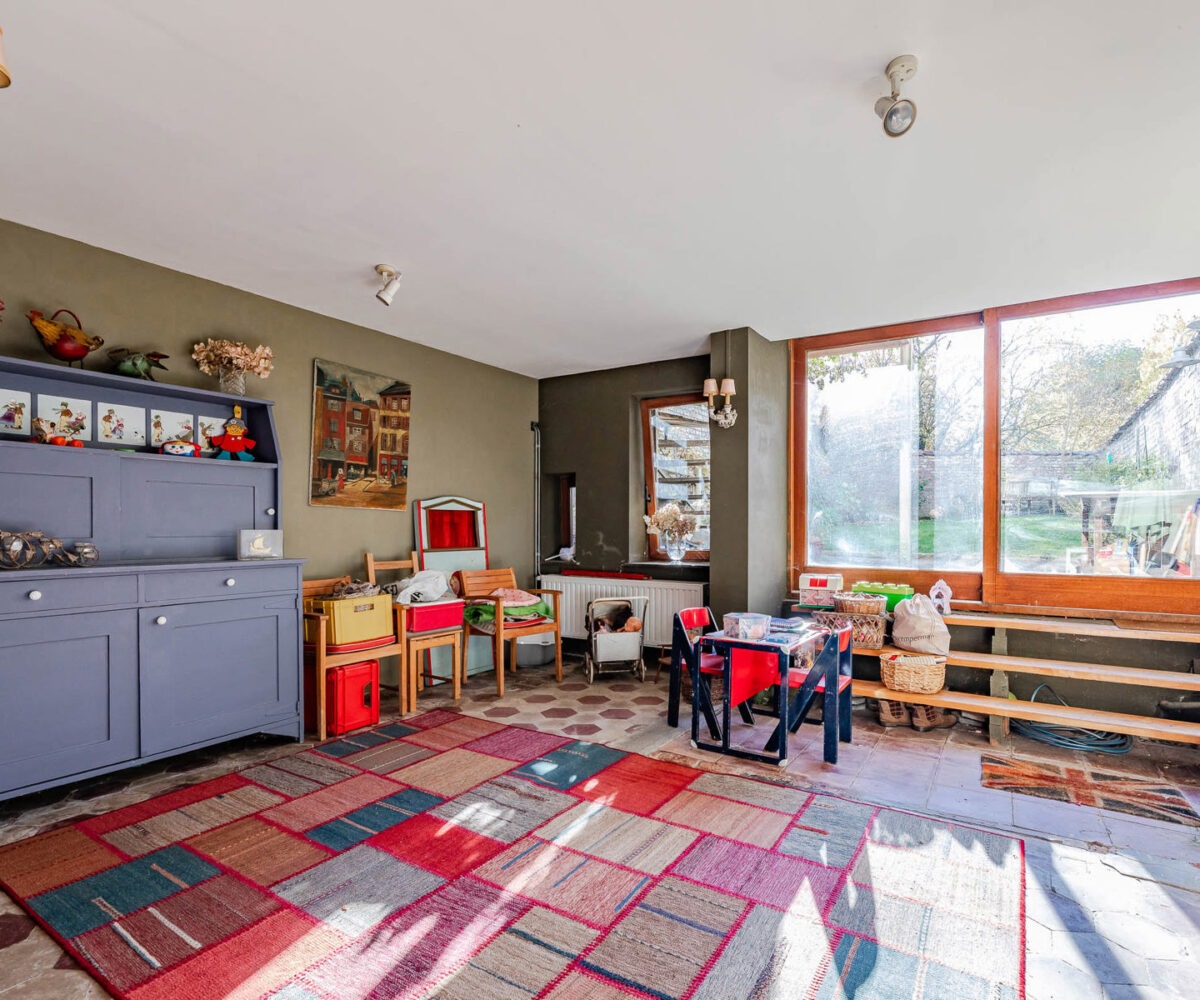 Technique : chaudière gaz à condensation ( Viesmann ), PEB F, électricité non conforme (sera remise en conformité), magnifiques éléments d’époque (moulures, vitraux).