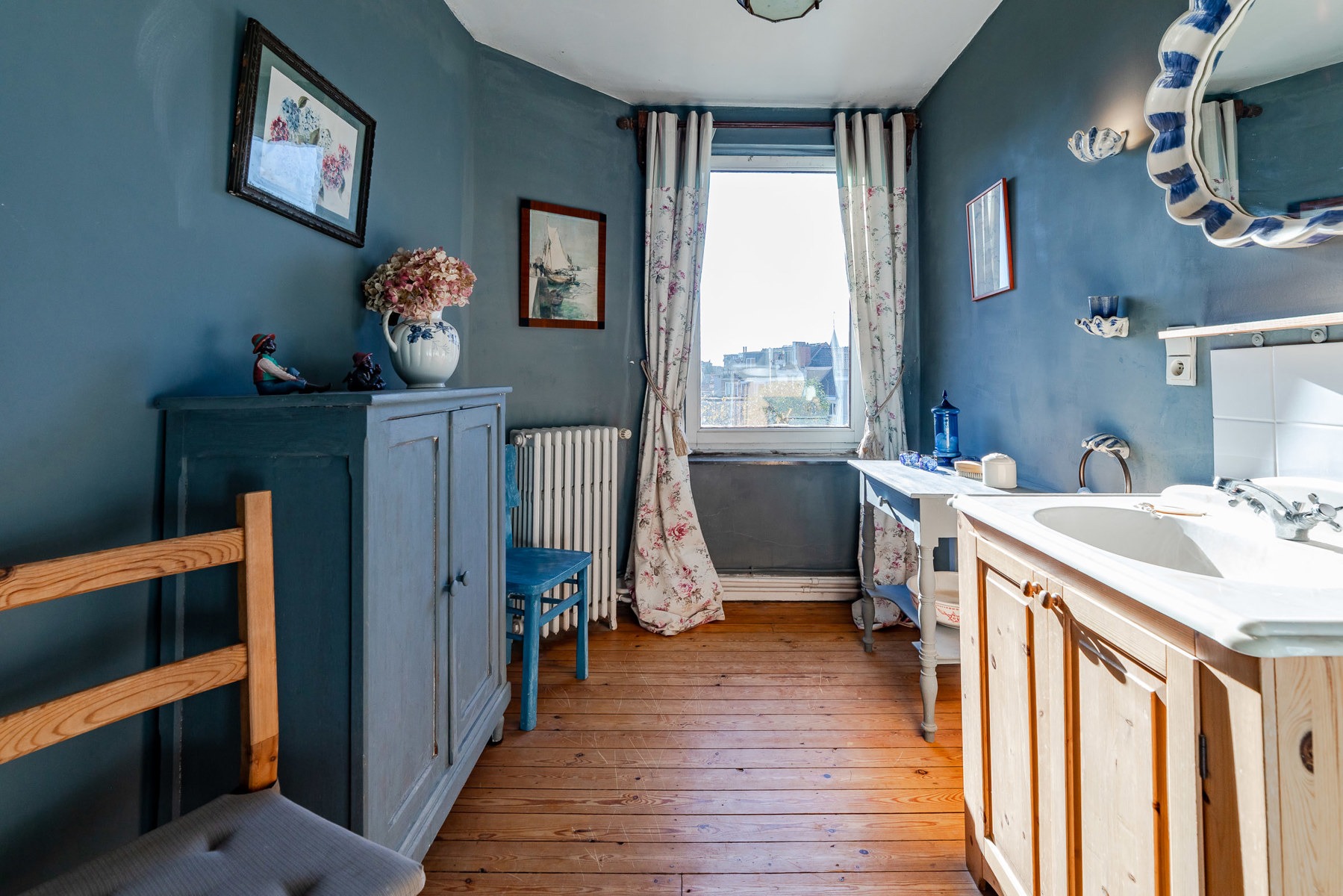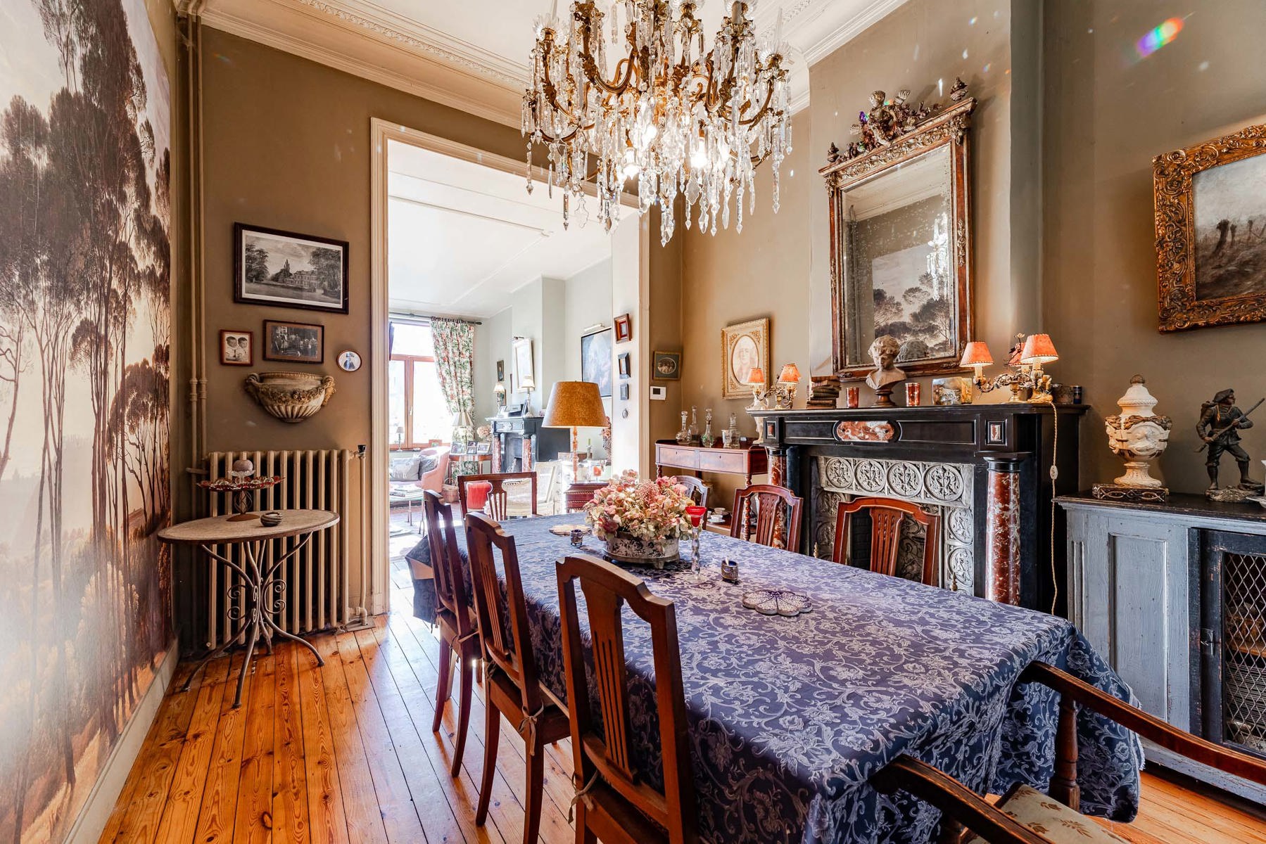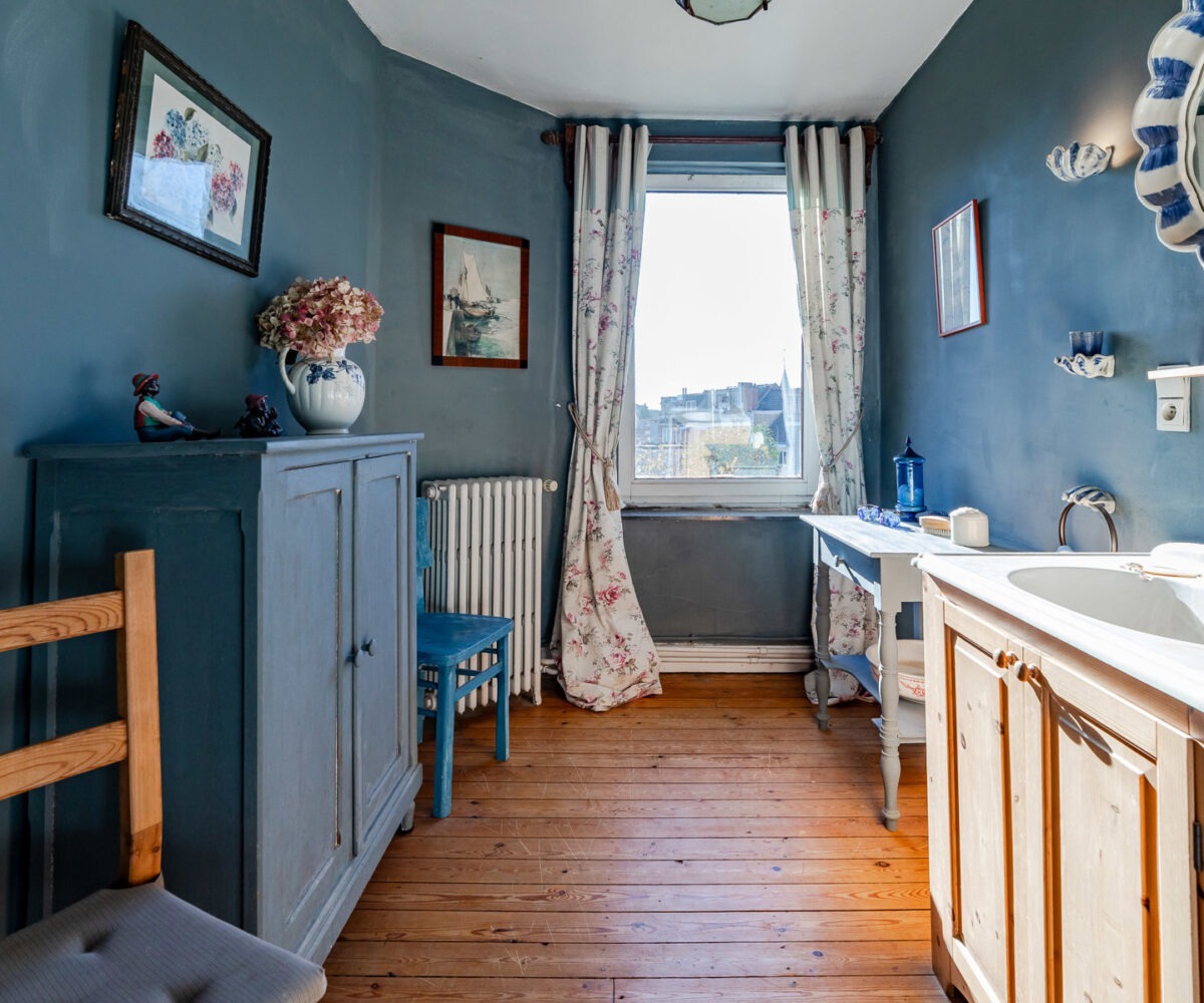 Technique : chaudière gaz à condensation ( Viesmann ), PEB F, électricité non conforme (sera remise en conformité), magnifiques éléments d’époque (moulures, vitraux).