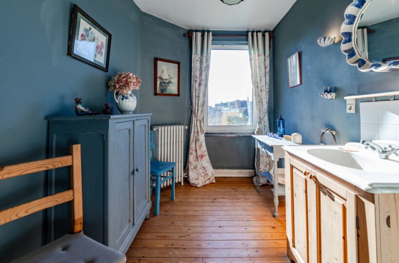 – Au 2ème étage : deux chambres (avec évier) dont une avec un balcon, une salle de douche (douche, évier) et wc séparé.